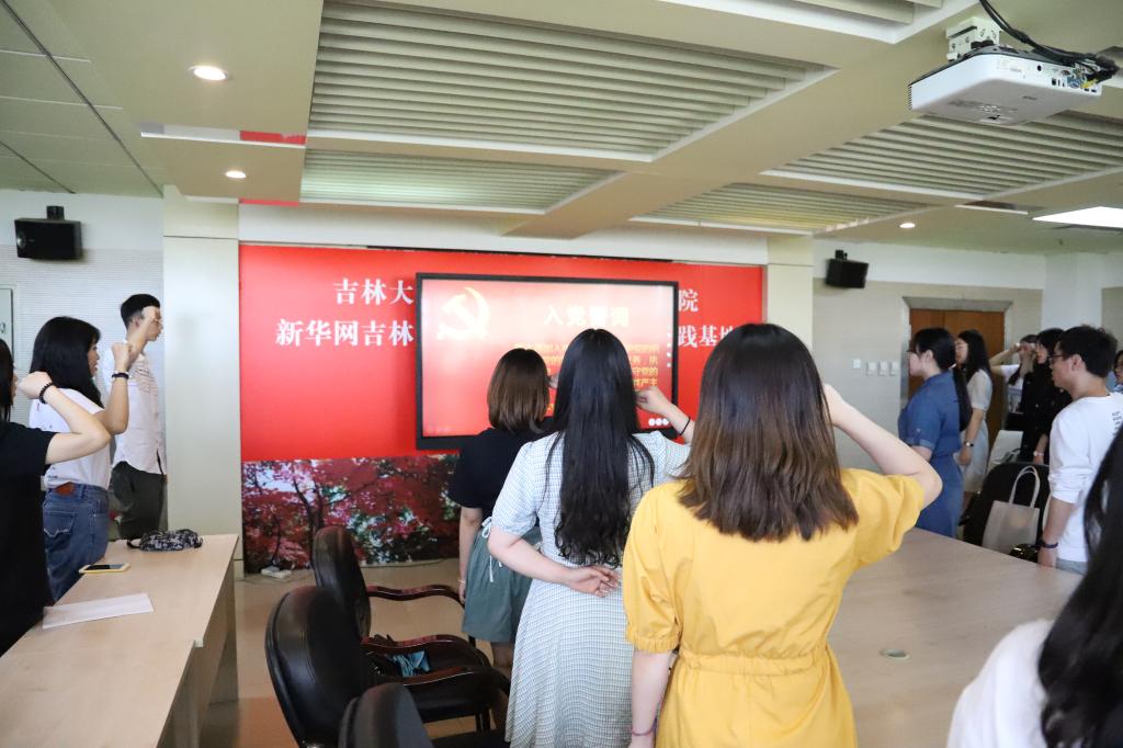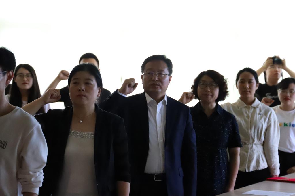 2019年6月20日,球探网页版2019届毕业学生党员于东荣十楼会议室集体重温入党誓词,参加活动的老师有球探网页版党委书记康永刚、党委副书记郝淑媛、党委副书记刘卓、学生工作办公室主任杨一博,领誓人为球探网页版2015级本科生第二党支部中共党员田济世。