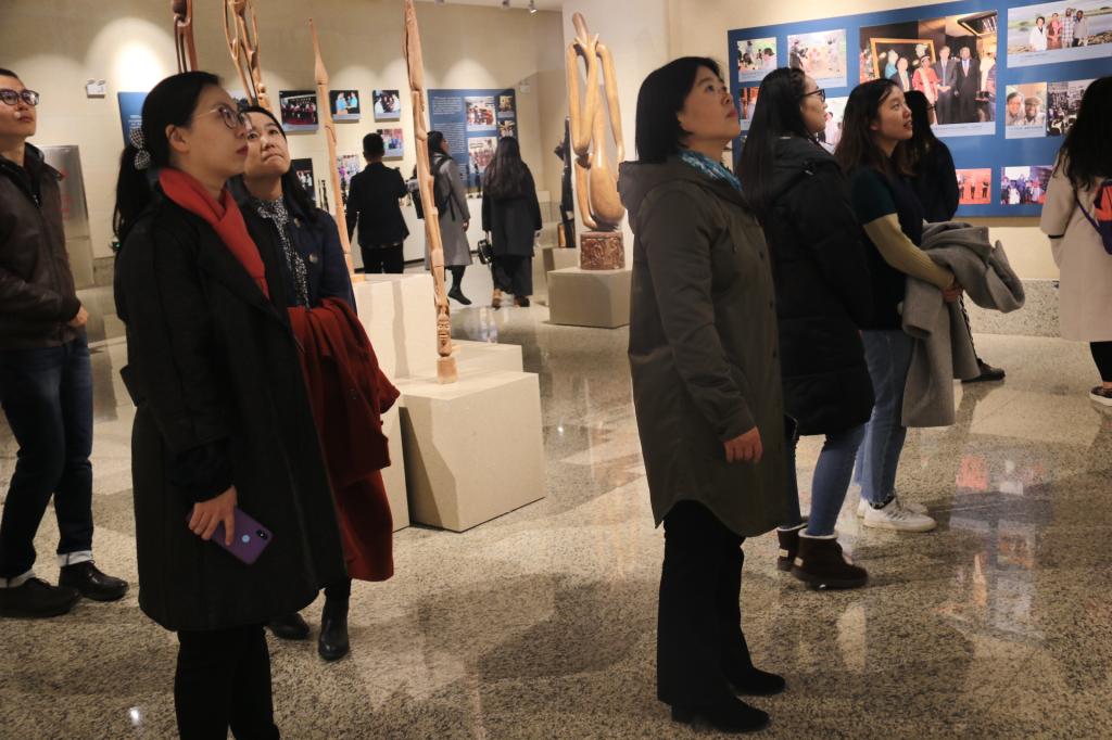 讲座前我院师生还参观了松山韩蓉非洲艺术收藏馆内的展列陈设。长春世界雕塑公园松山韩蓉非洲艺术收藏博物馆作为国内第一家非洲现代艺术专题博物馆,是我国非洲马孔德木雕艺术的集结地, 也是目前世界收藏坦桑尼亚马孔德木雕数量最多、品种最全、艺术水平最高的艺术收藏博物馆,其极具非洲艺术感的雕塑,给我院师生留下了深刻的印象。