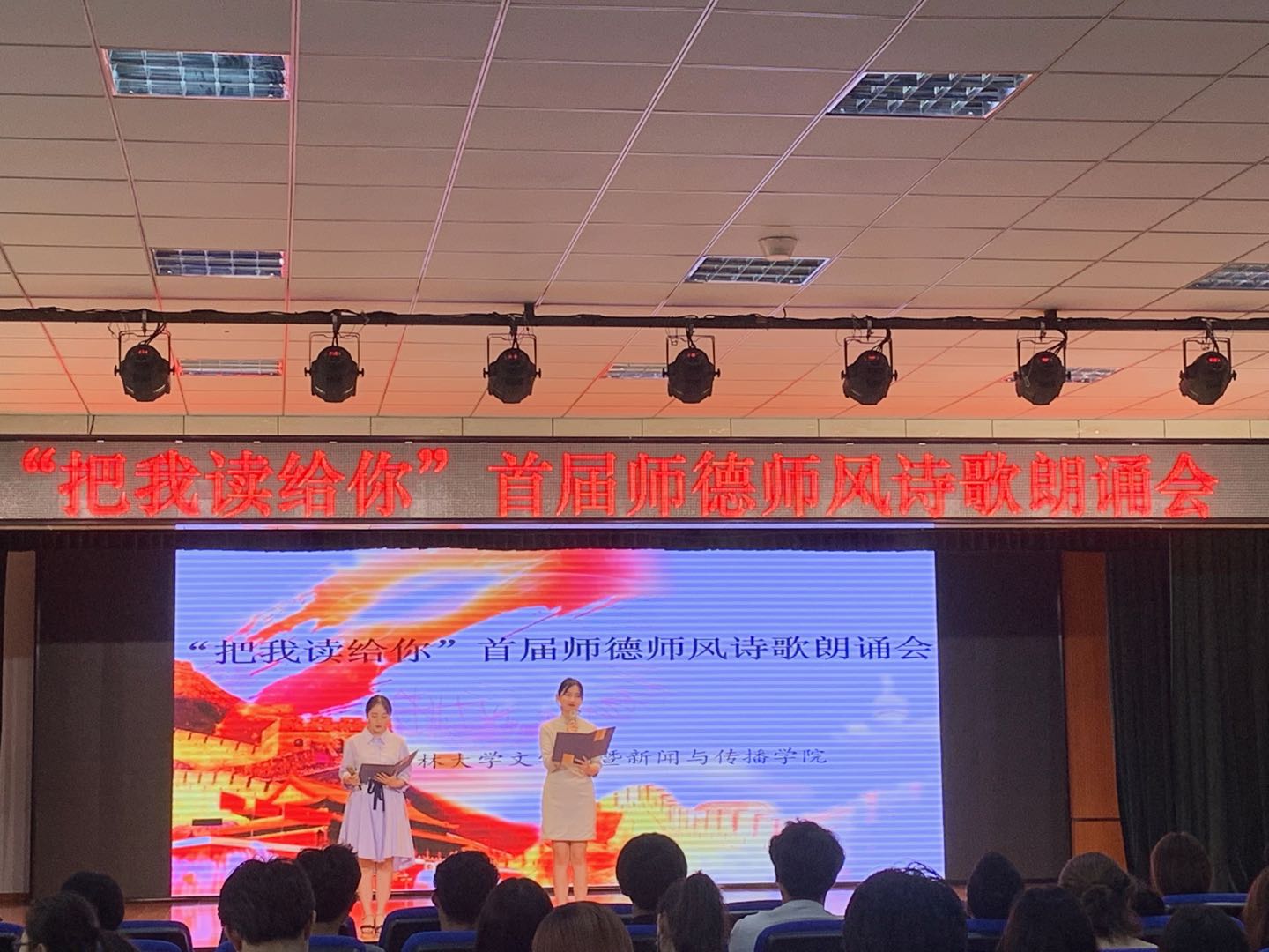 为进一步巩固立德树人文化成果,传播高尚师德师风,浓厚文化育人氛围,球探qiutan(中国)暨新闻与传播学院于2019年9月5日下午5点30分在田家炳礼堂举办了“把我读给你”首届师德师风诗歌朗诵会。新闻与传播学院广播电视艺术系副主任张芳馨老师作为点评嘉宾出席了本次活动。