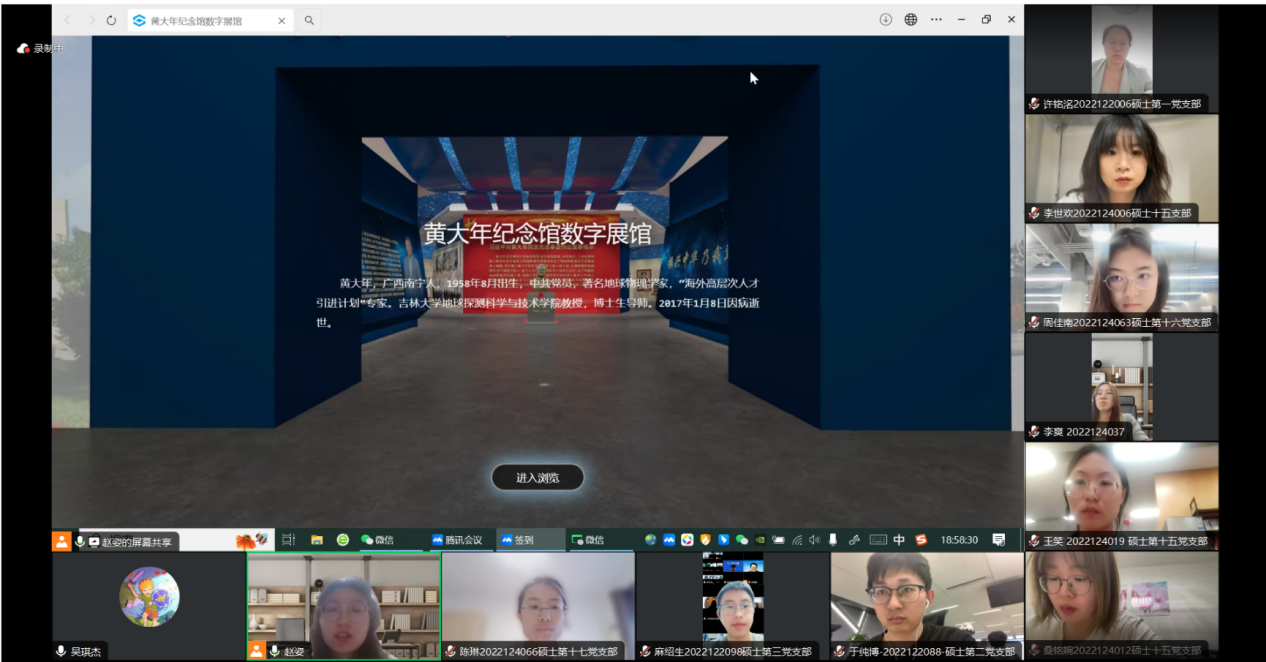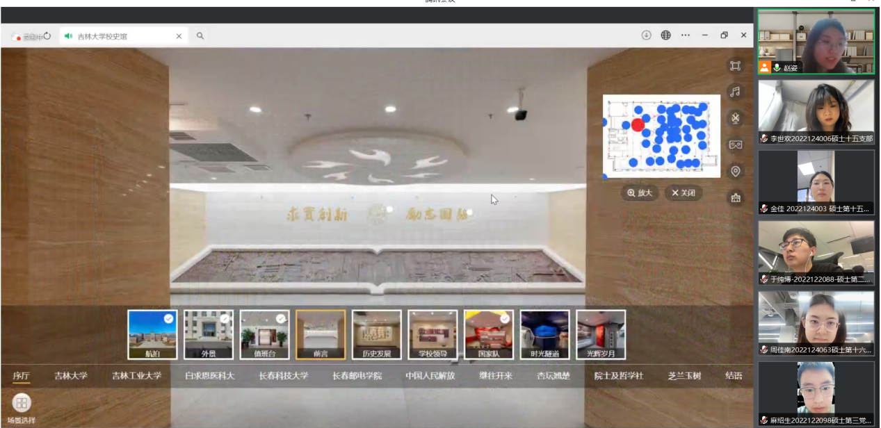 5月20日,第二批34名发展对象通过线上方式参观了吉林大学校史馆和黄大年纪念馆。通过虚拟漫游校史馆,与会学员详细了解了吉林大学的发展历程、文化传统和办学特色。通过视频、图片和文字等多种形式沉浸式参观黄大年纪念馆,与会学员进一步体悟了黄大年教授无私奉献、勇于创新的精神风貌和高尚品格。